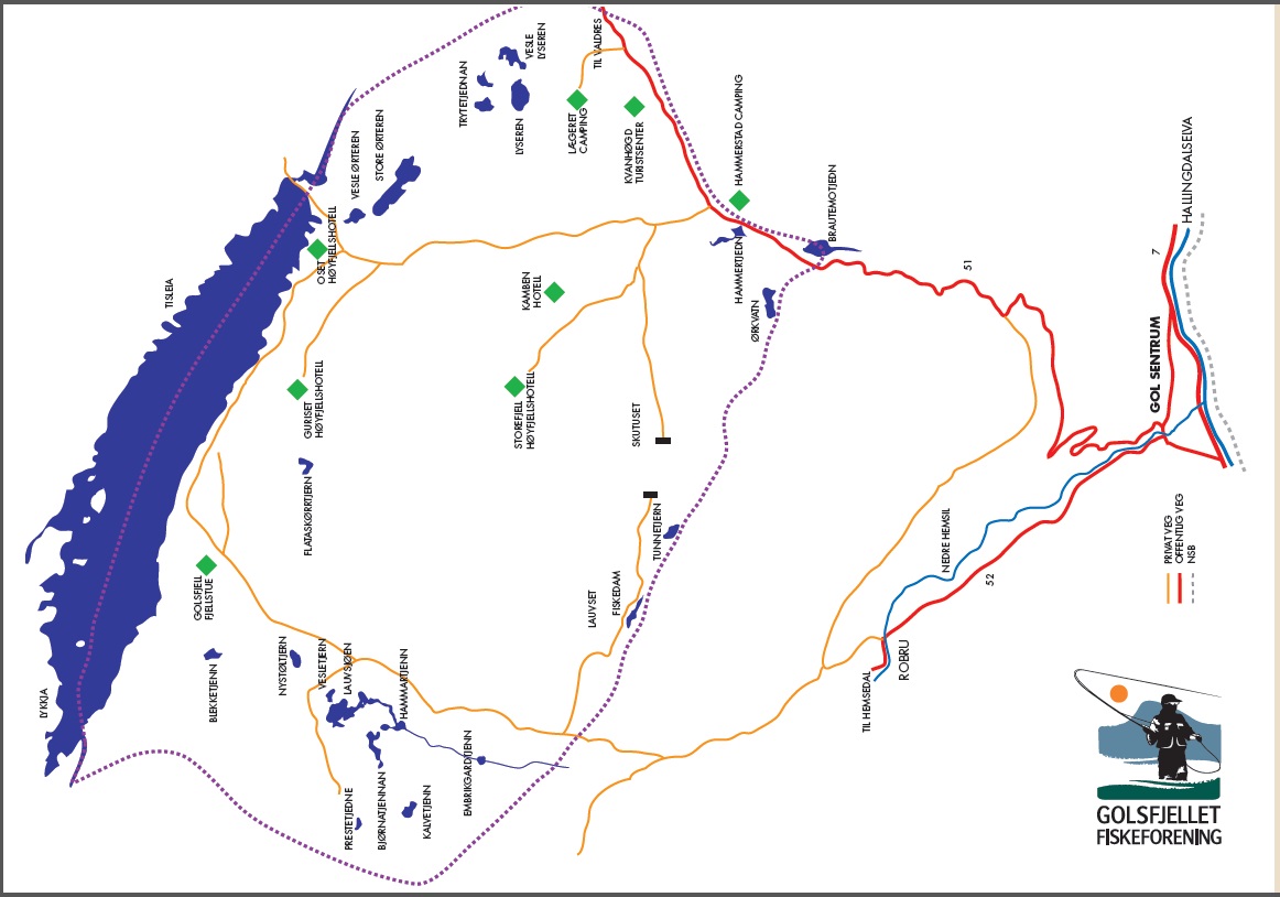 Vann, elver og bekker der ørretene lever naturlig i høyfjells-naturen, slik de har gjort til alle tider. Velkommen til et sportsfiskereventyr som kan oppfylle dine våteste drømmer ! Fiskekortet gjelder 20 vann og øvre del av Tisleielva (Gol kommune). Du kan også pilke på isen på Tisleifjorden.